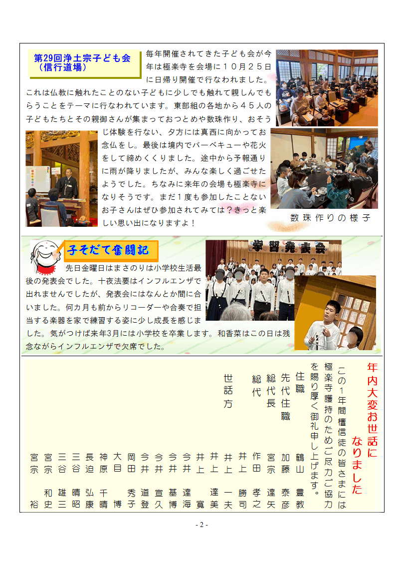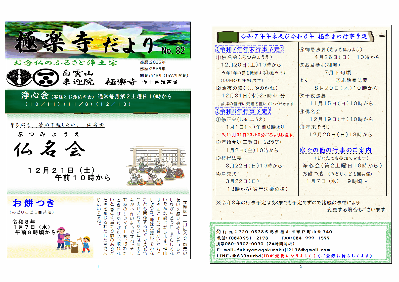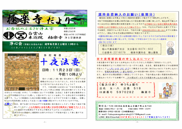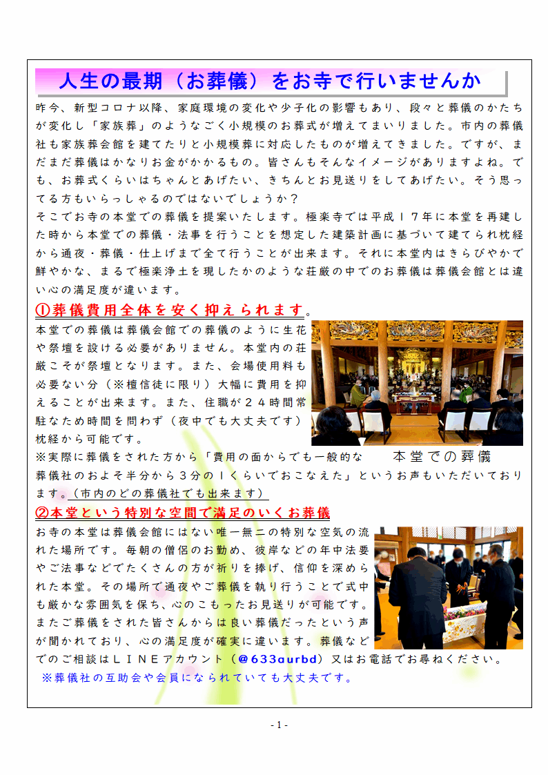 極楽寺だよりとは定期的にお寺から檀信徒の皆様へお配りしているお寺からのお知らせです。