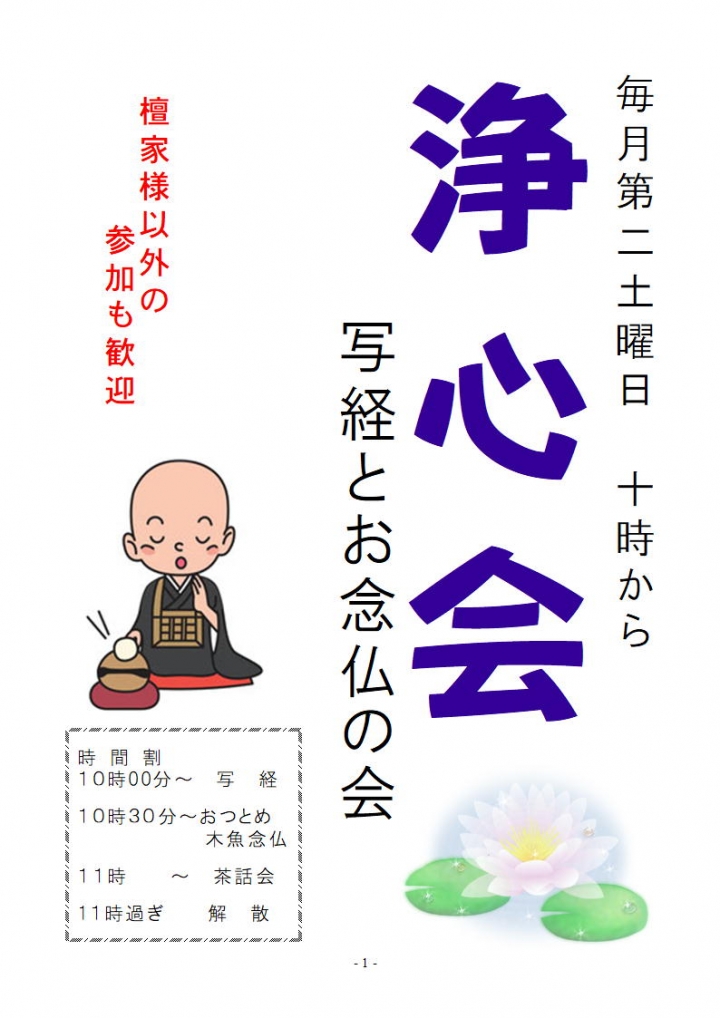 浄心会とは『浄土に心を傾ける会』という写経とお念仏の会です。